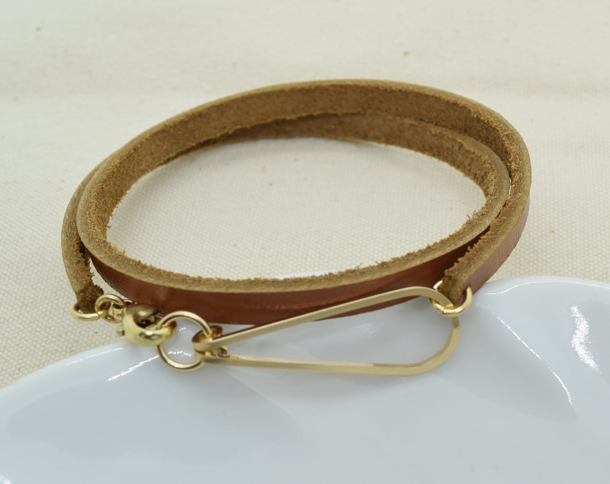 With just the right balance of delicate and substance, the Elan Bracelet completes any outfit with easy elegance. The double wrap leather bracelet is available in three metals, sterling silver, 14K gold-filled and 14K rose gold-filled, so you can choose the best fit for your own taste.  Also choose brown or black leather.
