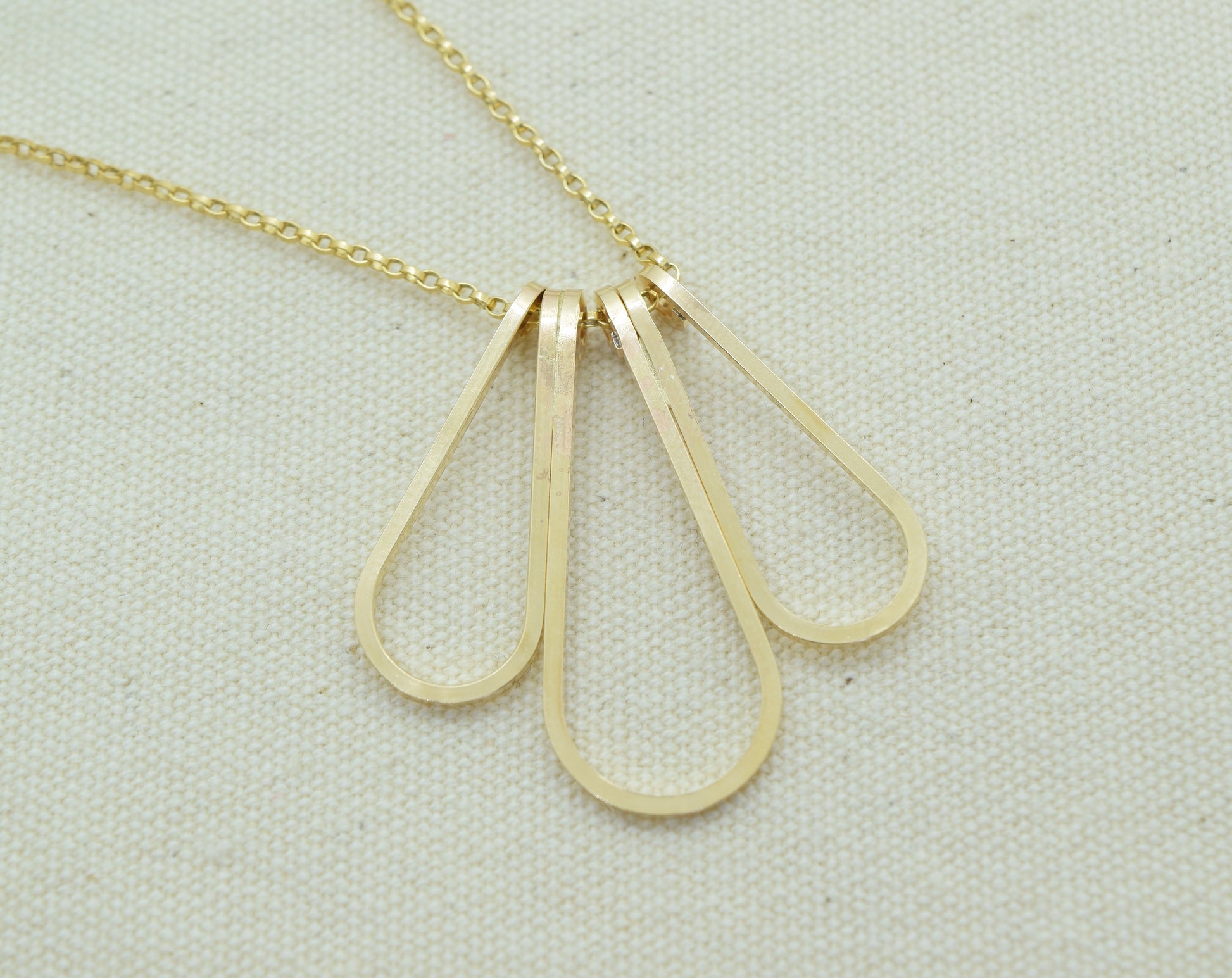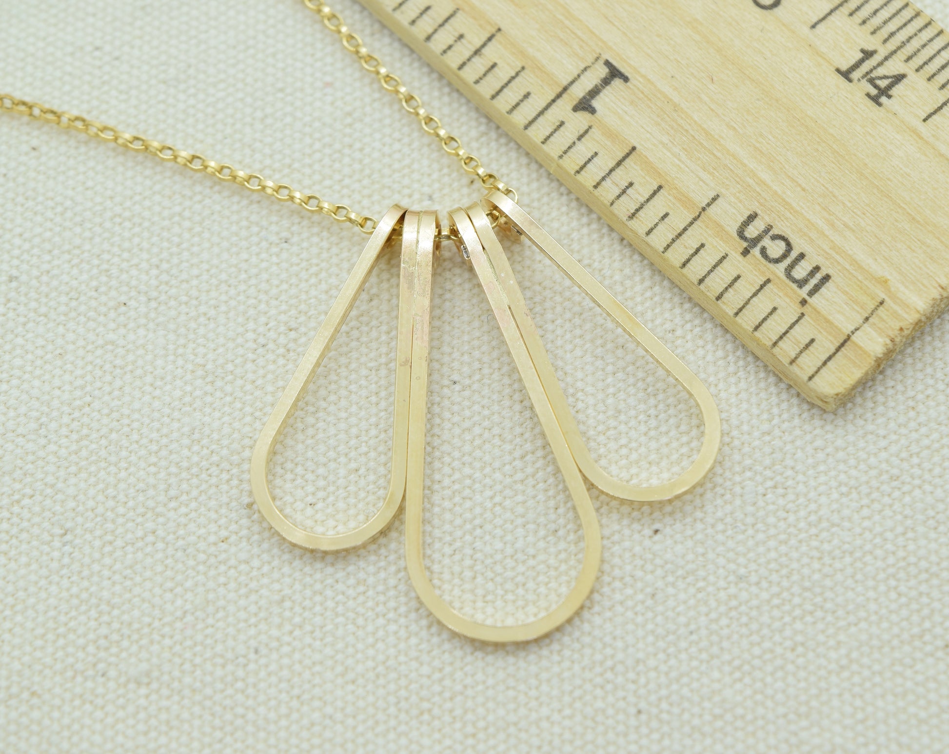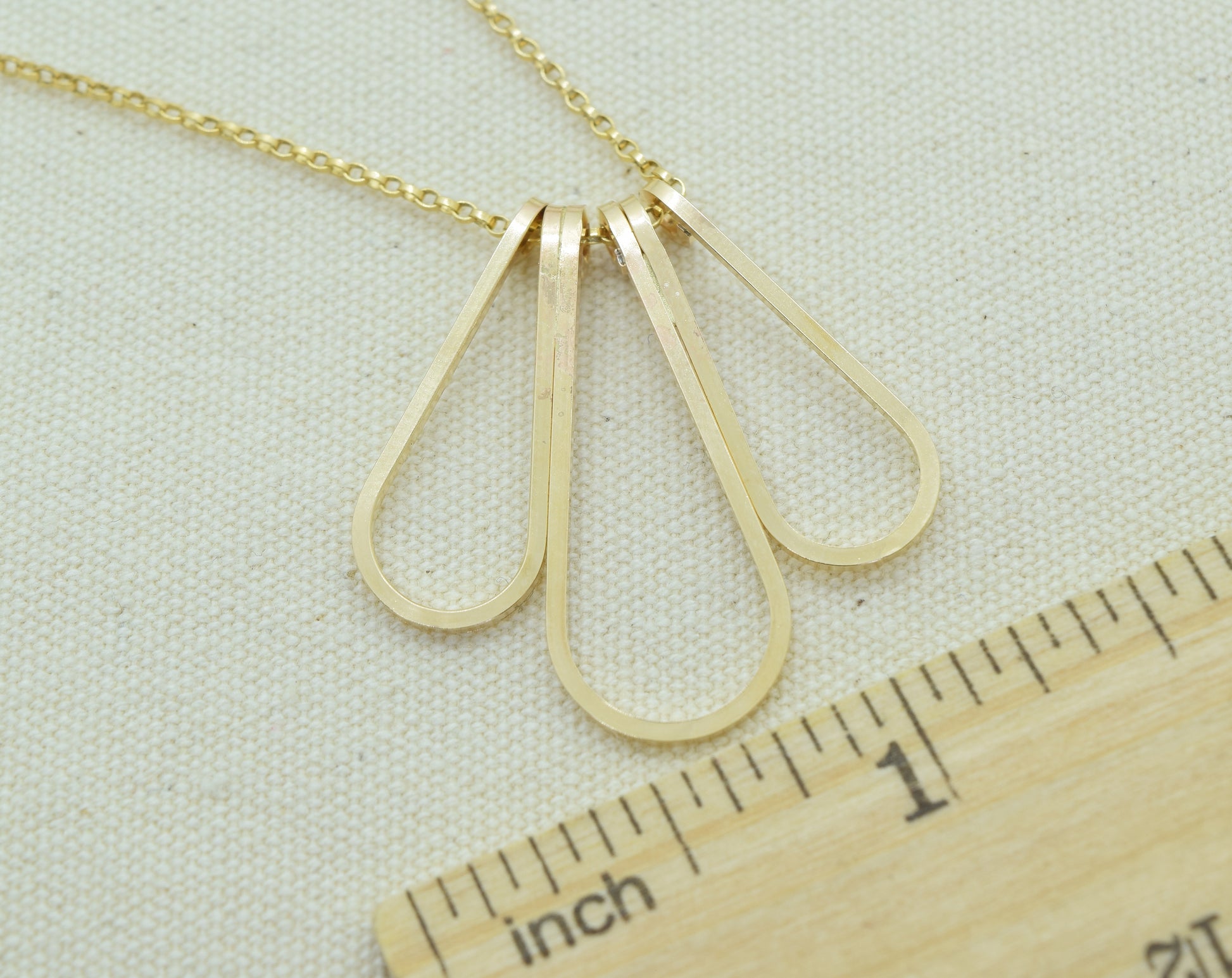 Shiny gold-filled teardrops combine to create an array of elegance, while offering a beautifully delicate look and feel.  Goes perfect with your favorite dress!  Composed of 14K gold filled drops, the pendant hangs from a 14K gold filled chain and is available is 16, 18, 20 and 22 inches.