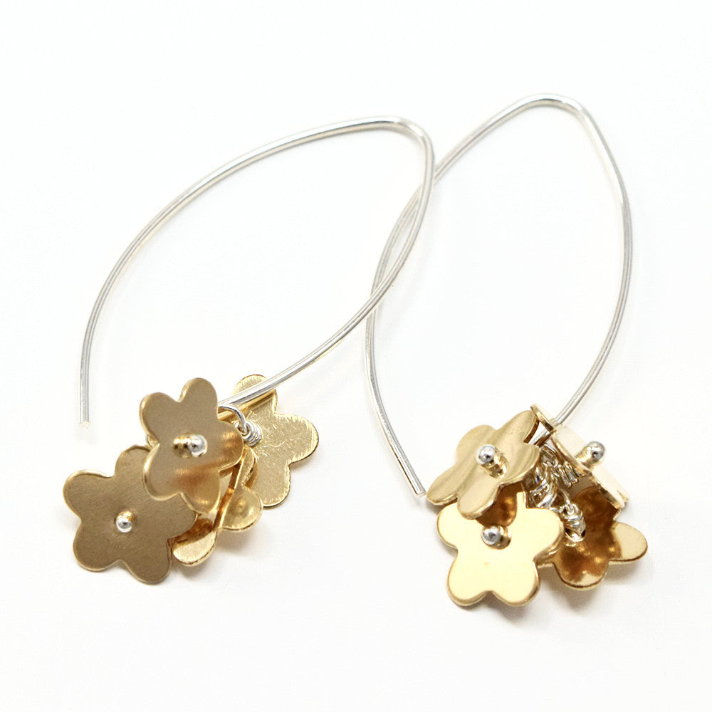 Just about the sweetest earrings you'll ever wear! Clusters of gold filled flowers hang about 2" (5 cm) on long sterling silver ear wires.
