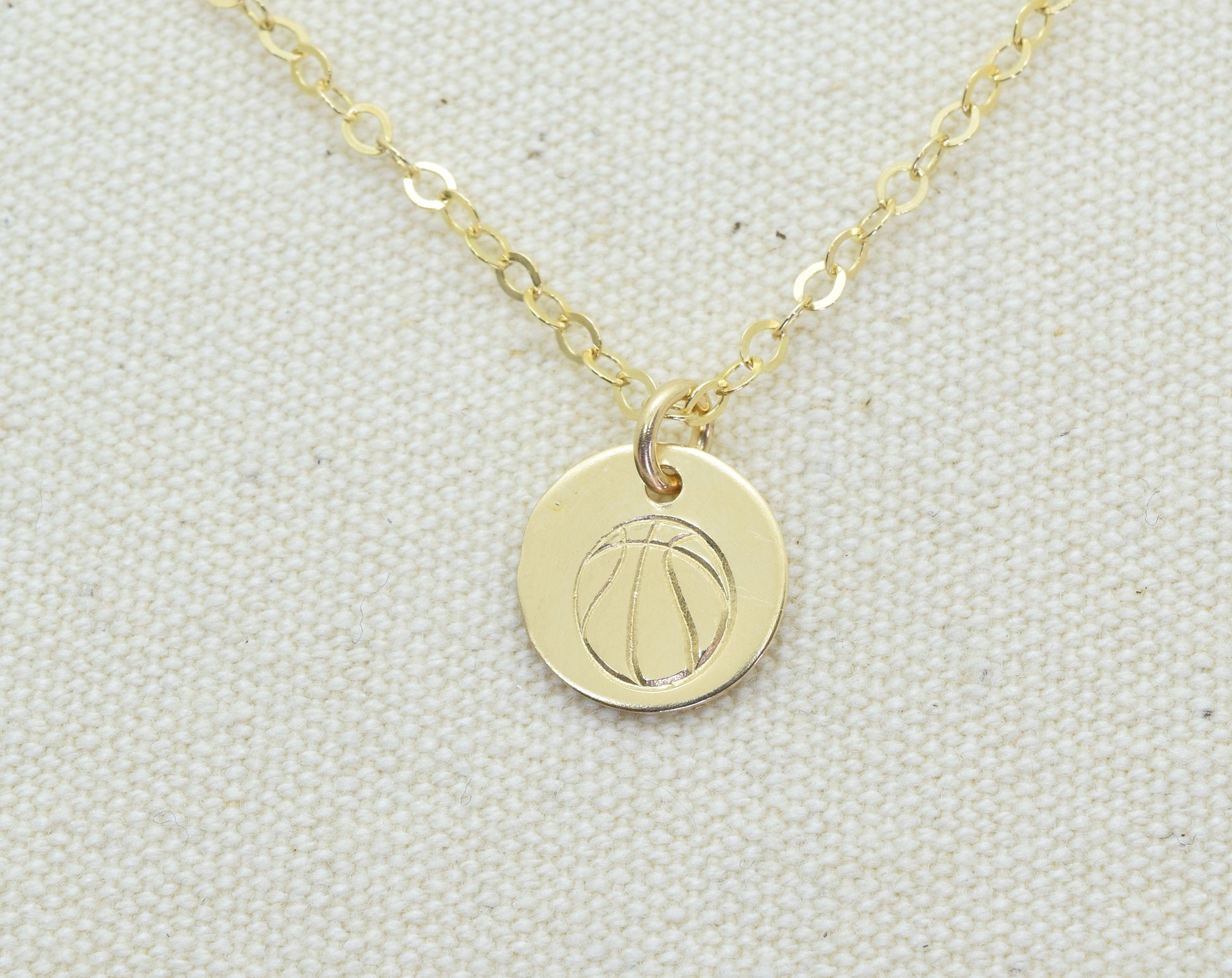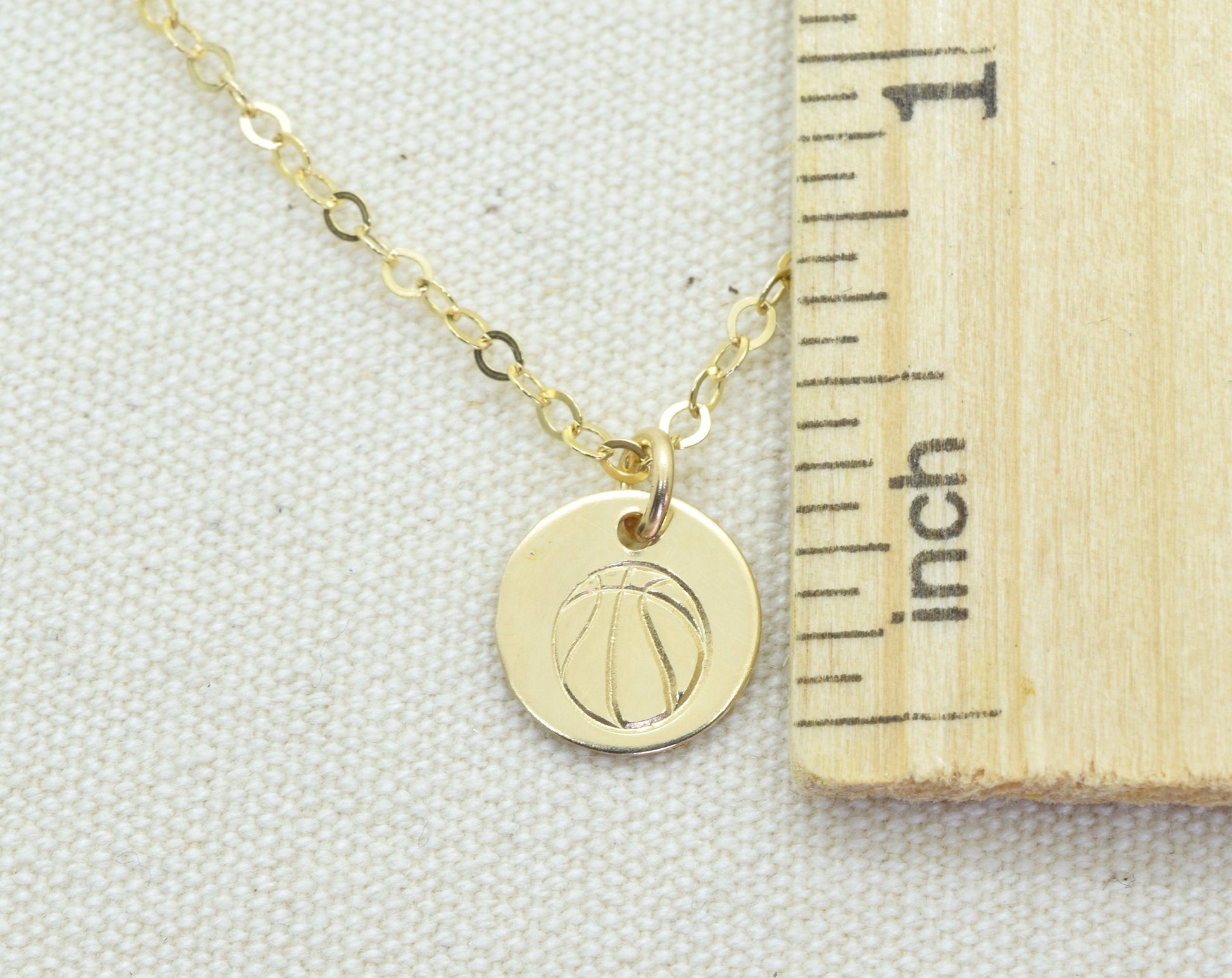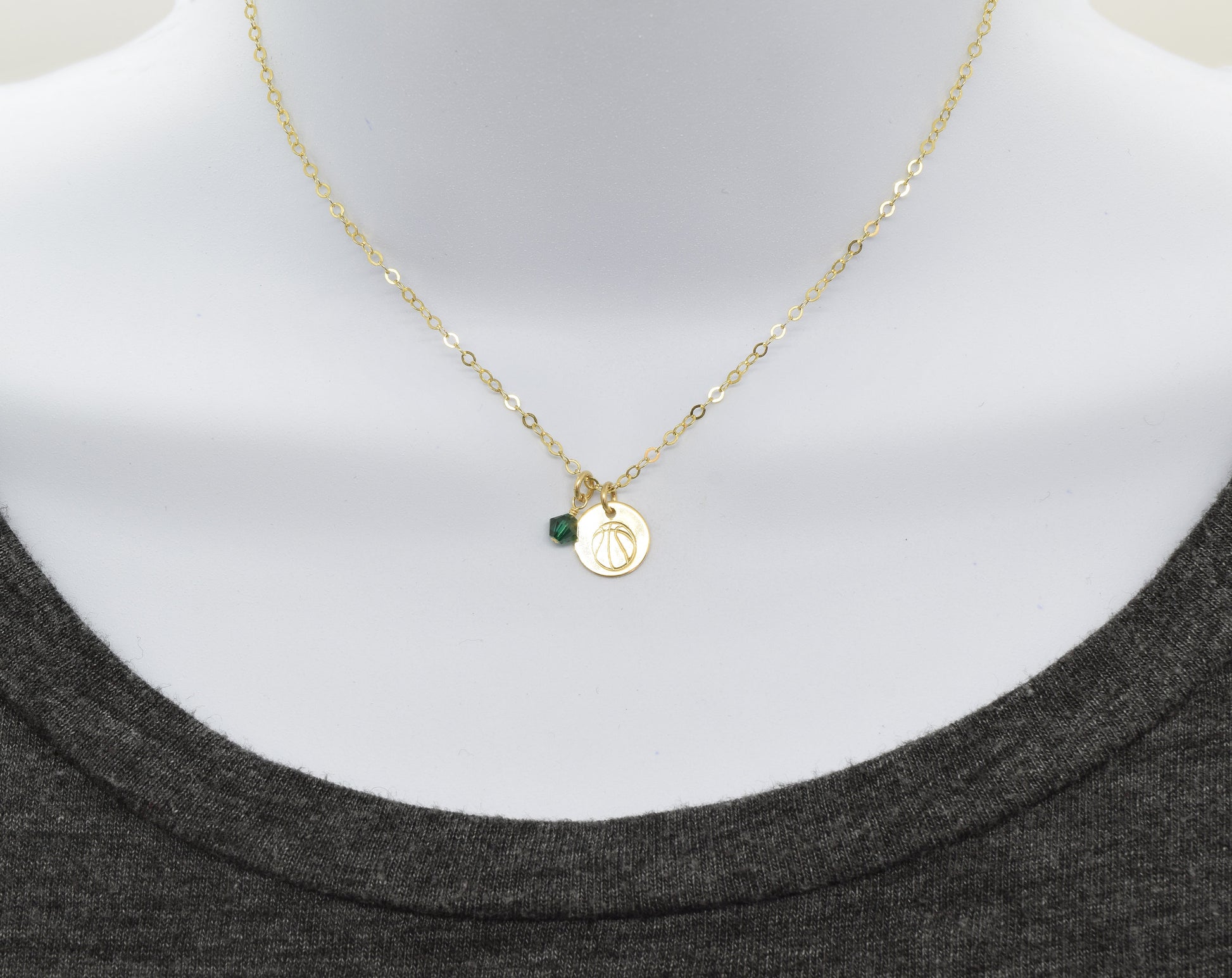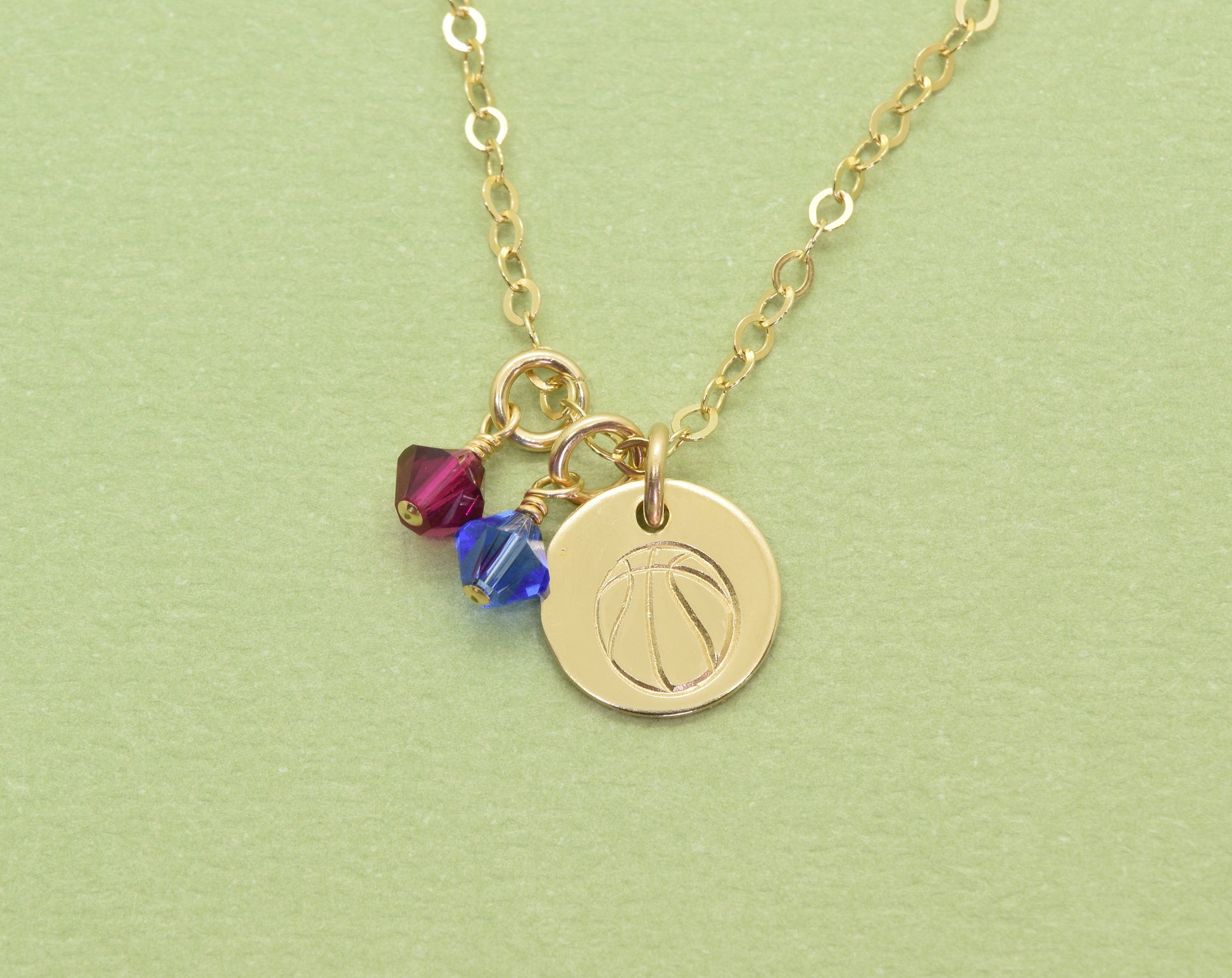 Show off your love of the game with a basketball charm neckalce. This tiny basketball charm measures 3/8" (9.5mm) in diameter and hangs from a gold filled cable chain. Available as a simple charm on a chain or personalize it and add your Birthstone or Team Colors. GET ONE FOR EVERYONE ON THE TEAM-Ask us about team discounts!