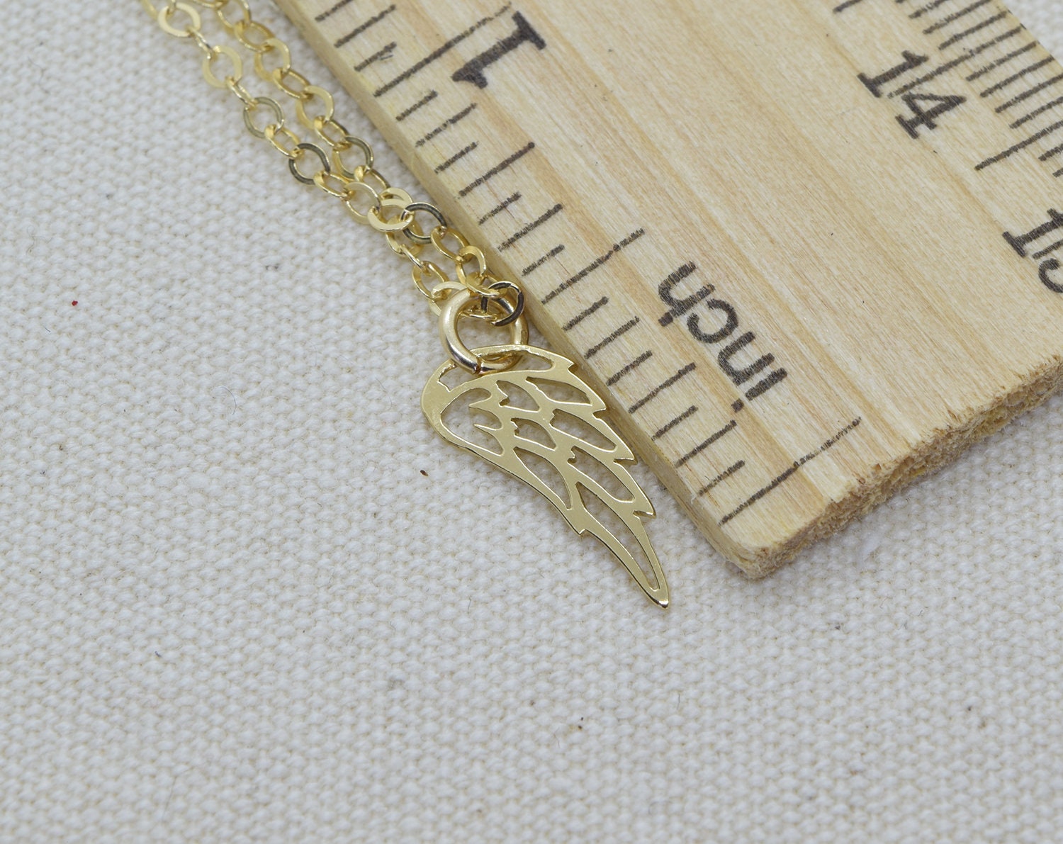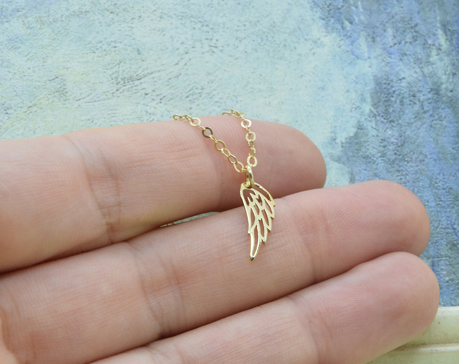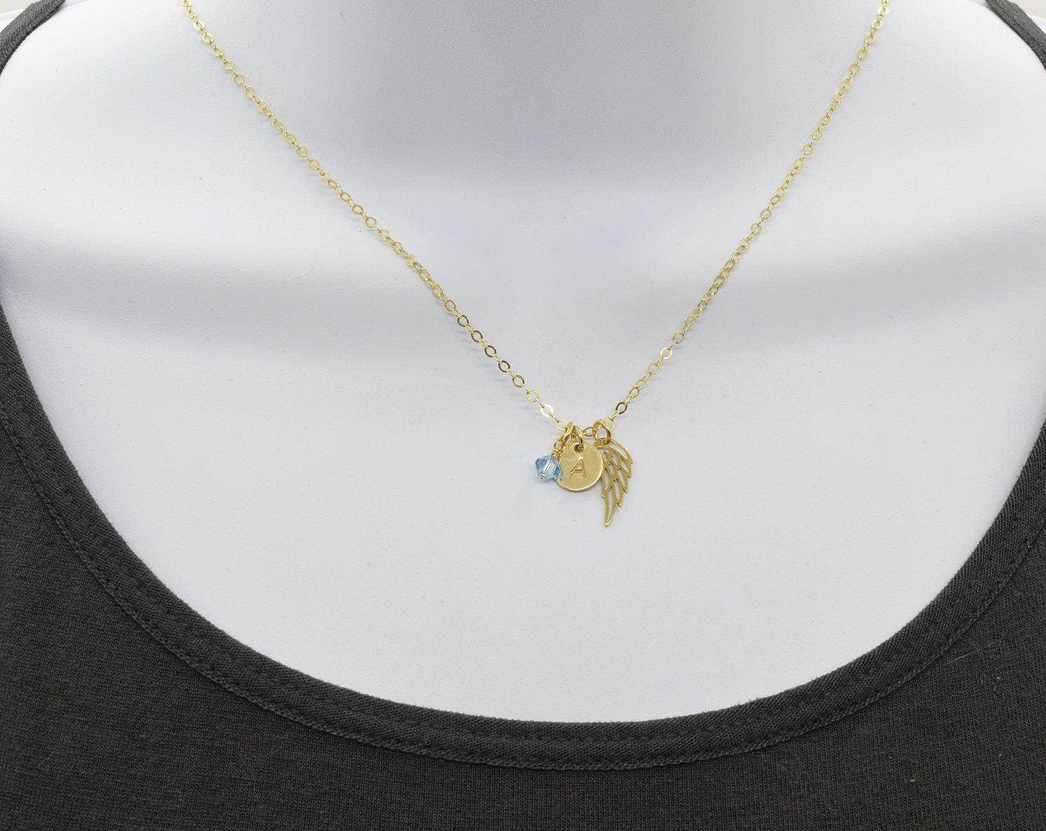 Hold the memory of your loved one close to your heart with a dainty Angle Wing Charm Necklace. The angel wing is VERY DAINTY at 15mm (1/2 in). Available as a simple charm on a chain or personalize it and add an Initial and/or Birthstone.