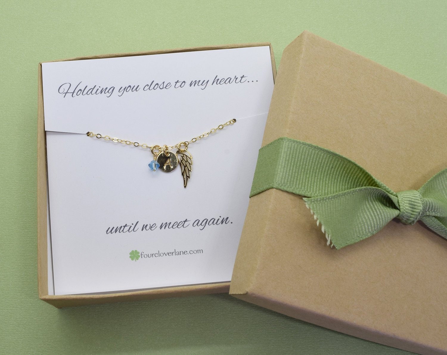 Necklace card reads "Holding you close to my heart...until we meet again."