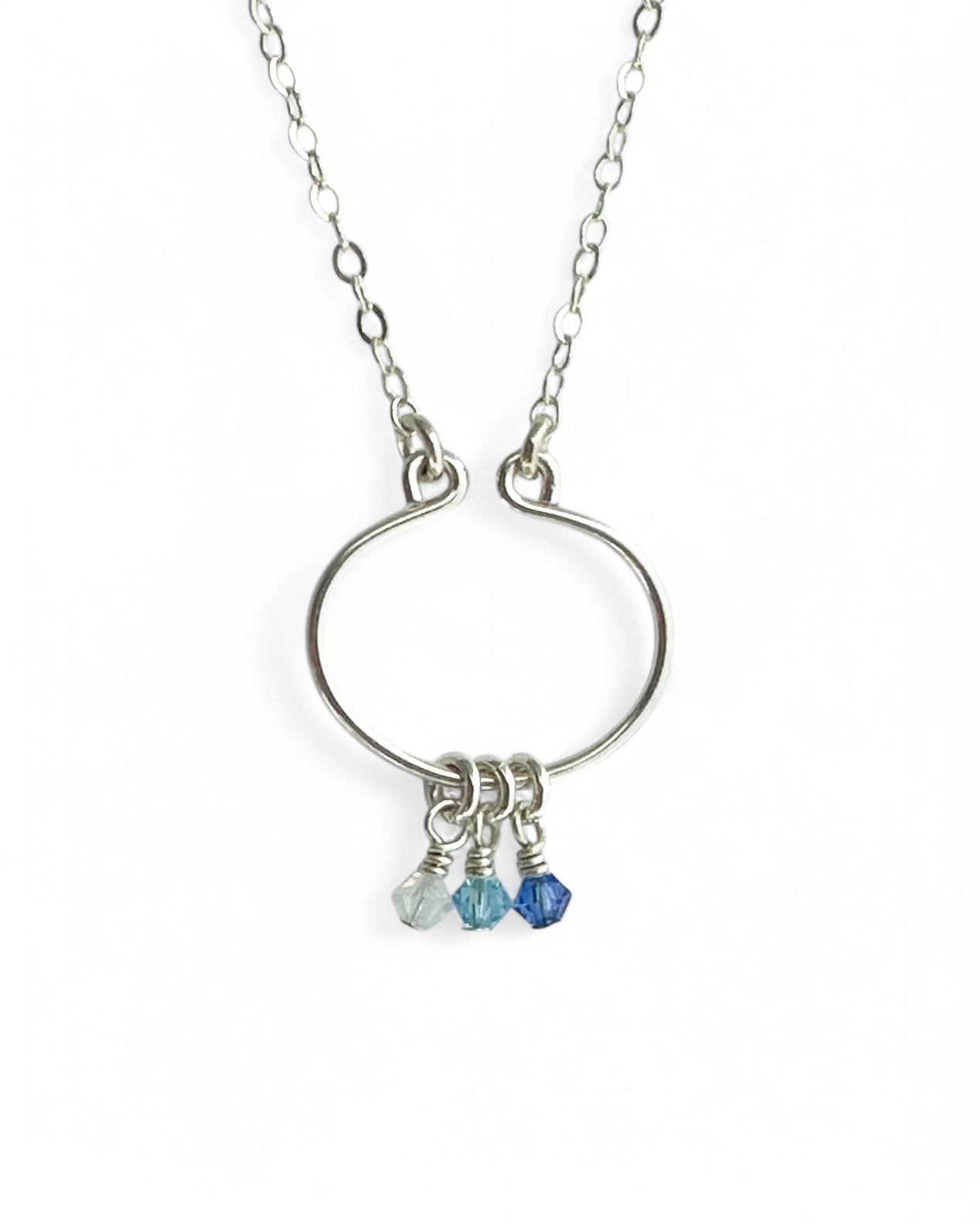 A beautiful small lyre-shaped centerpiece (5/8 inch diameter) with the birthstones of those you hold dear hangs from a delicate cable chain in 16, 18, 20, or 22 inch length. The accompanying bead charms are made with 3mm crystals. Please note that this necklace has different pricing levels.