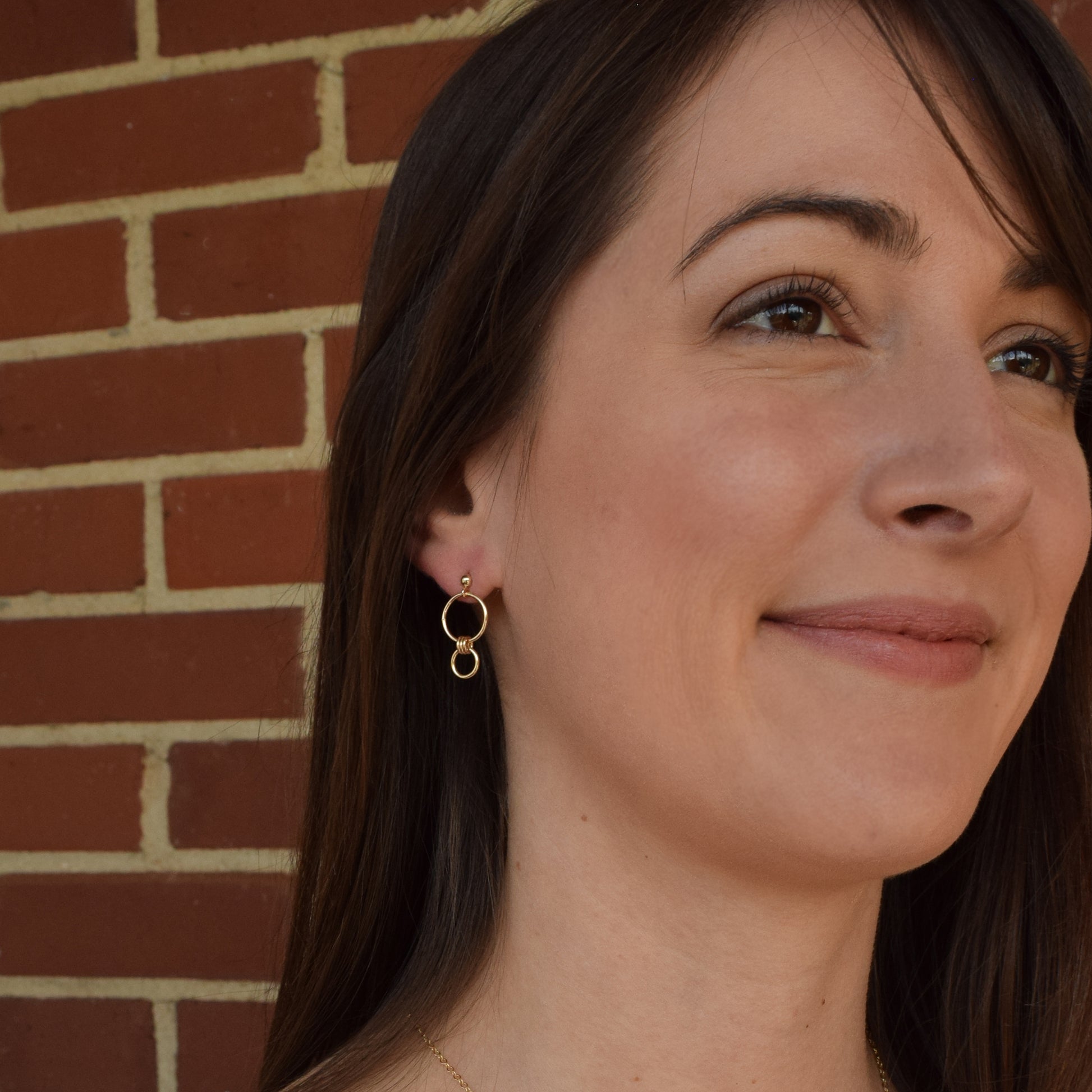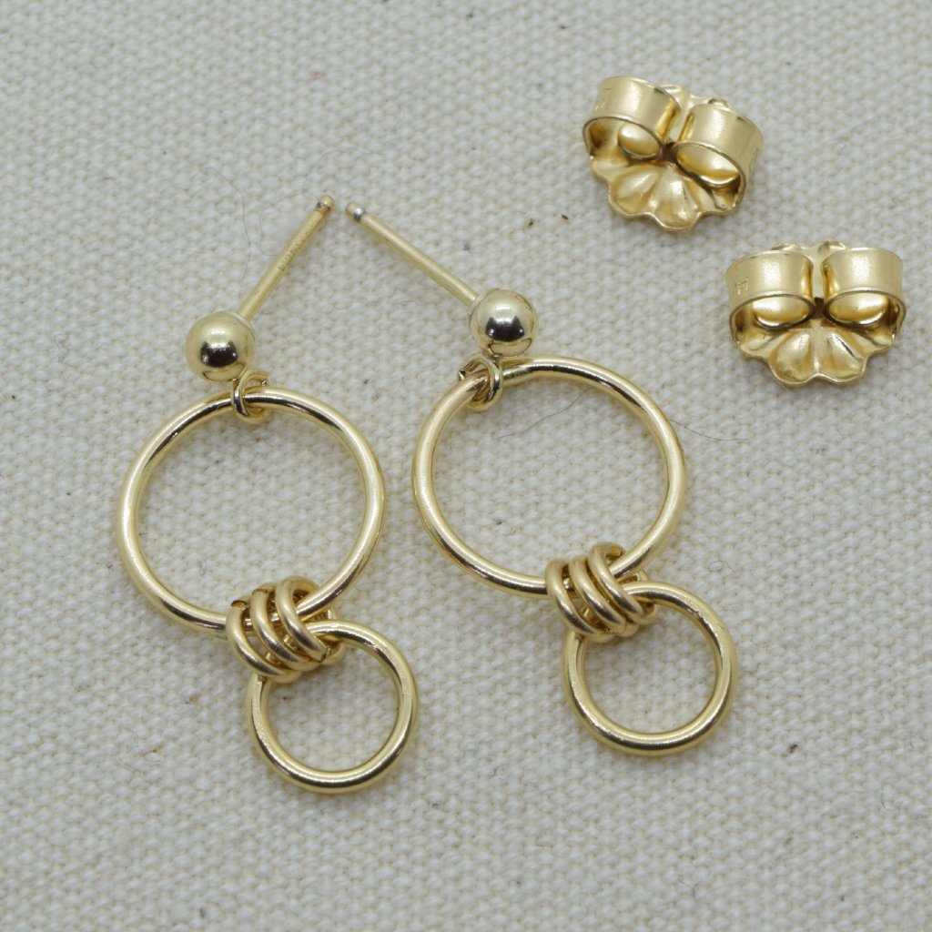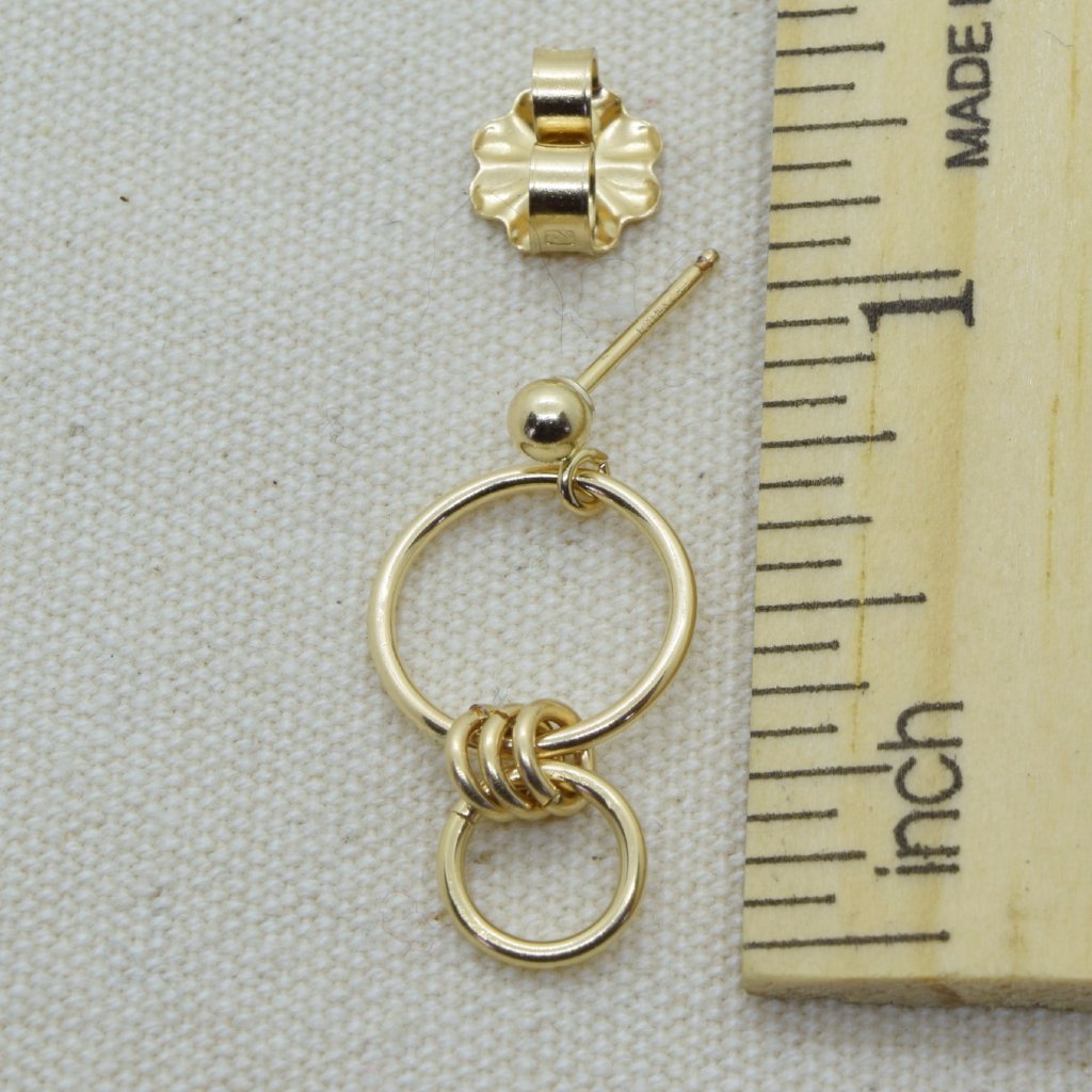 Graduated connected circles are attached to 3mm ball post studs and make a perfect Teacher's gift! Larger circle is 9mm wide and the total length is about 3/4 of an inch. 14K Gold-filled.