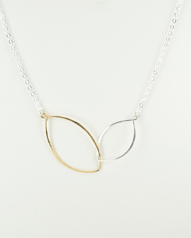 Adorn yourself in simple beauty with elegant, interlocking flower petals in complimentary precious metals.  Composed of sterling silver and 14K gold filled flowers, the petal necklace is dainty and lightweight.  The largest flower measures 2 inches and is attached with a sterling silver cable chain, available in 16, 18, and 20 inches.