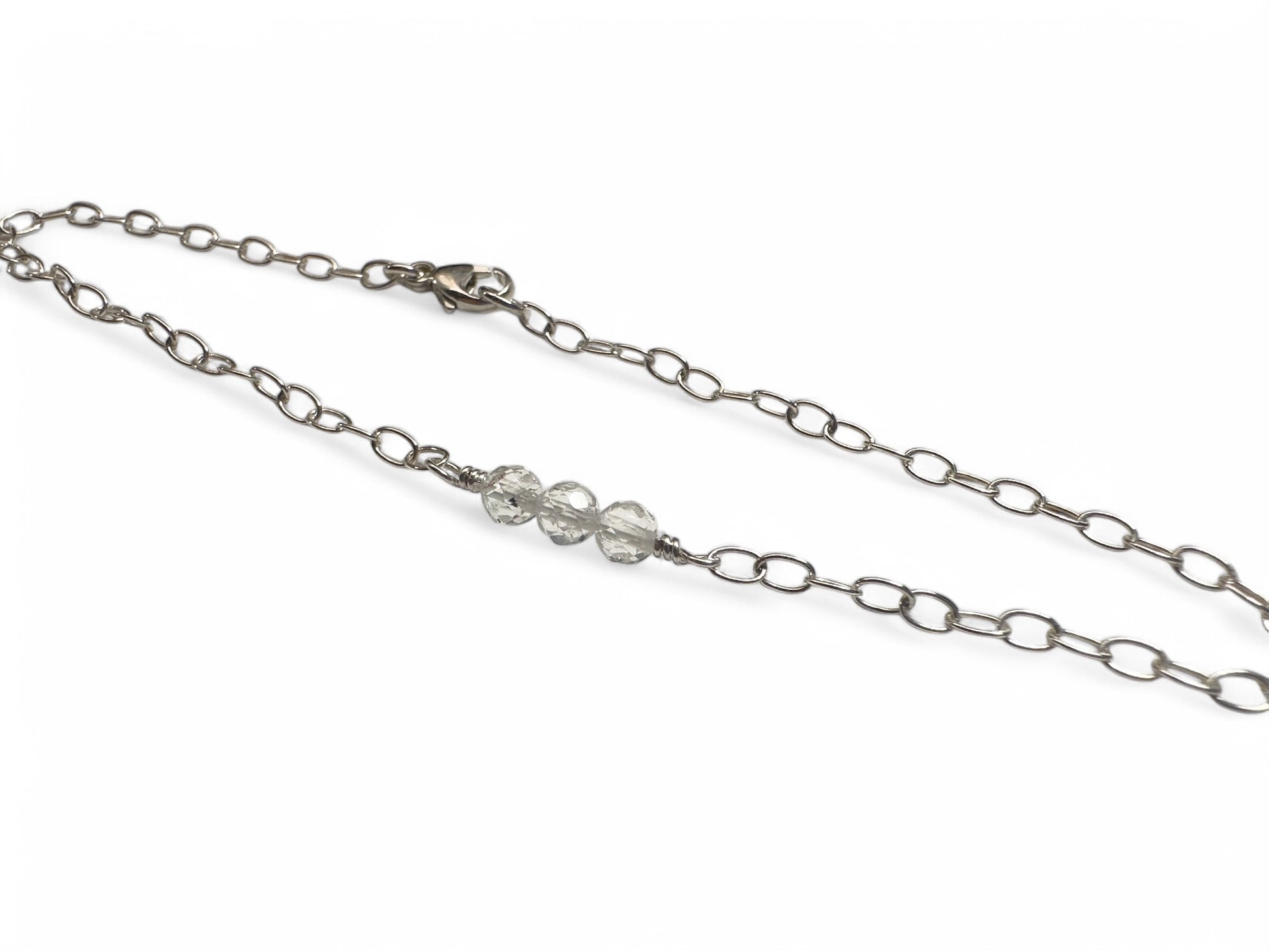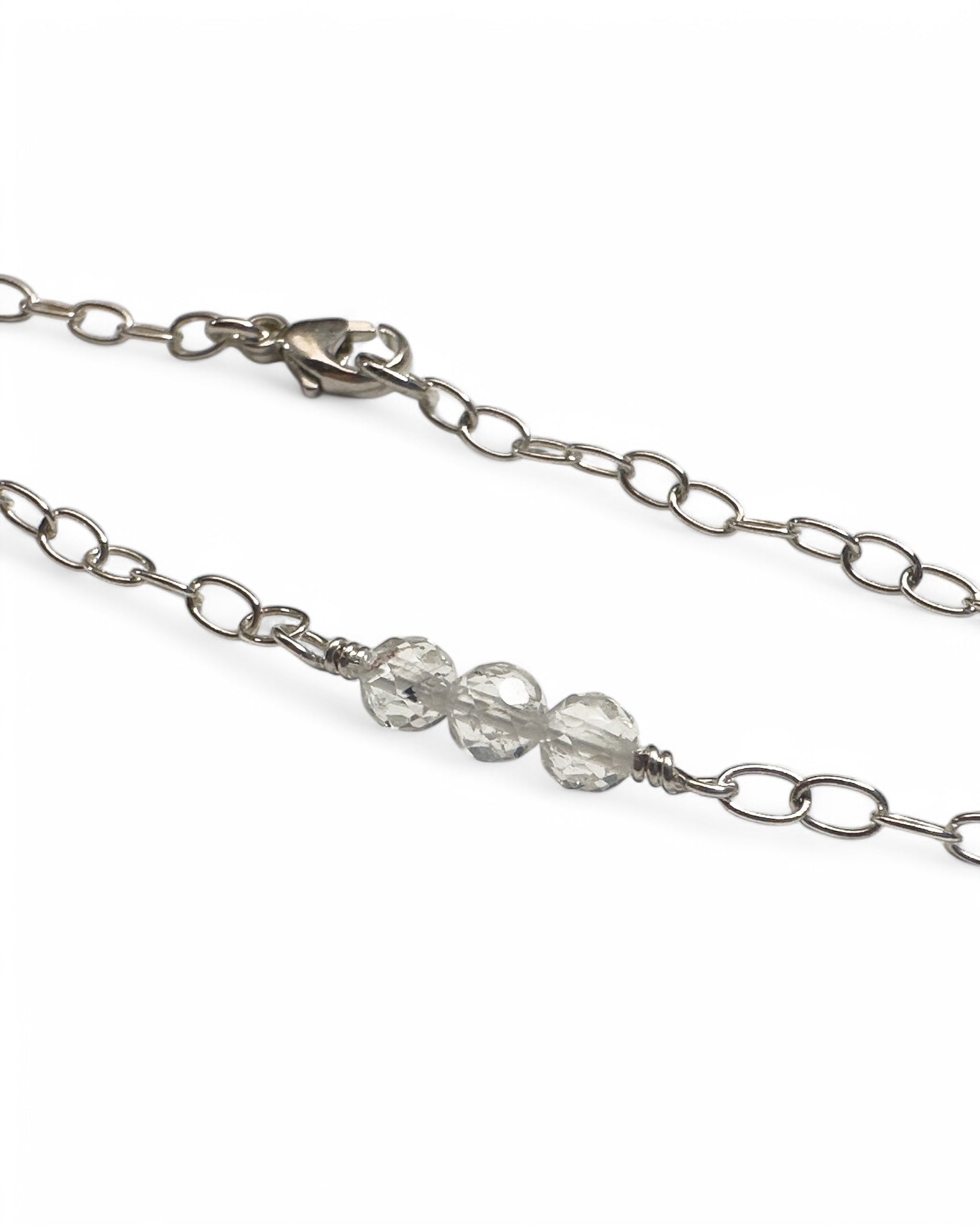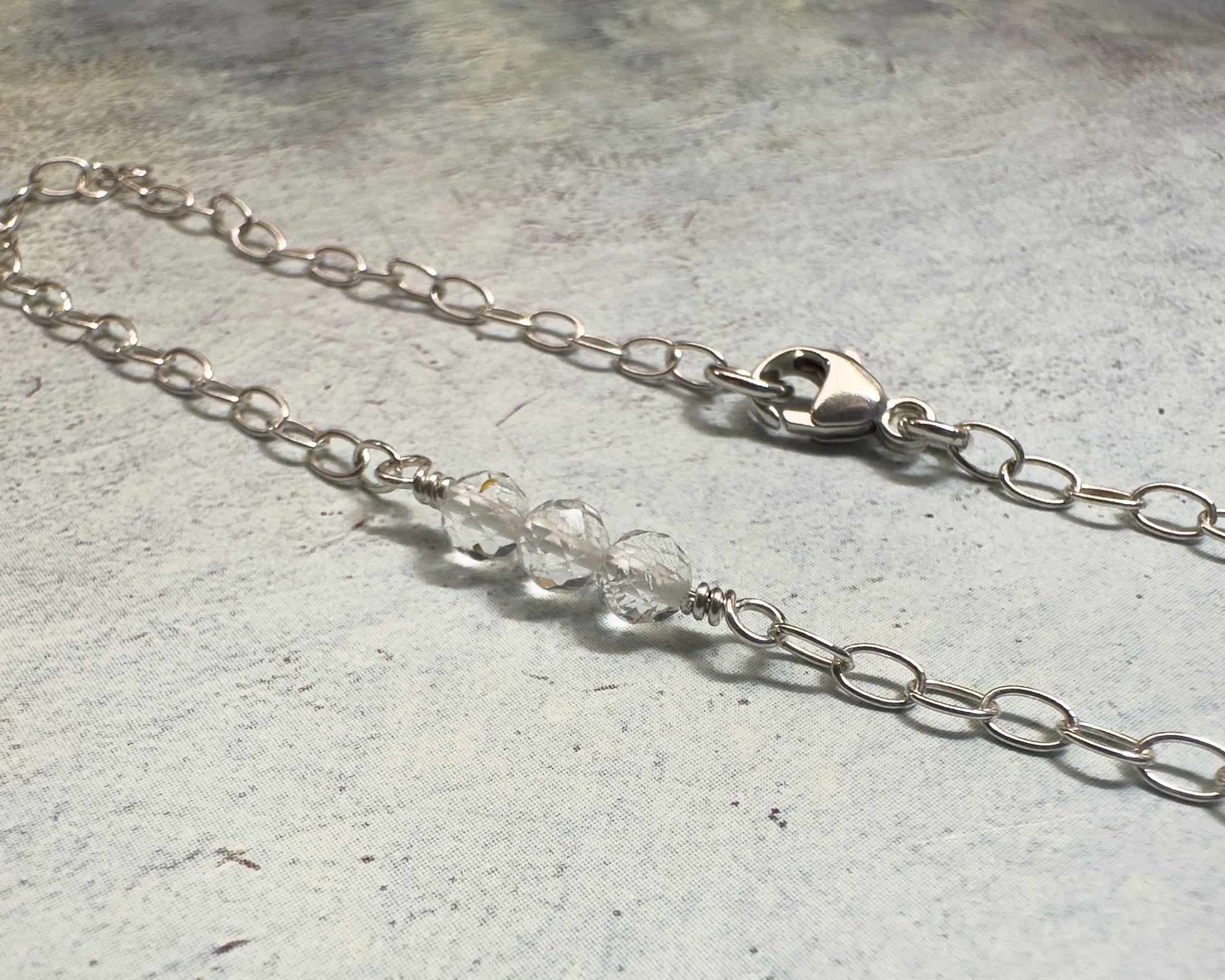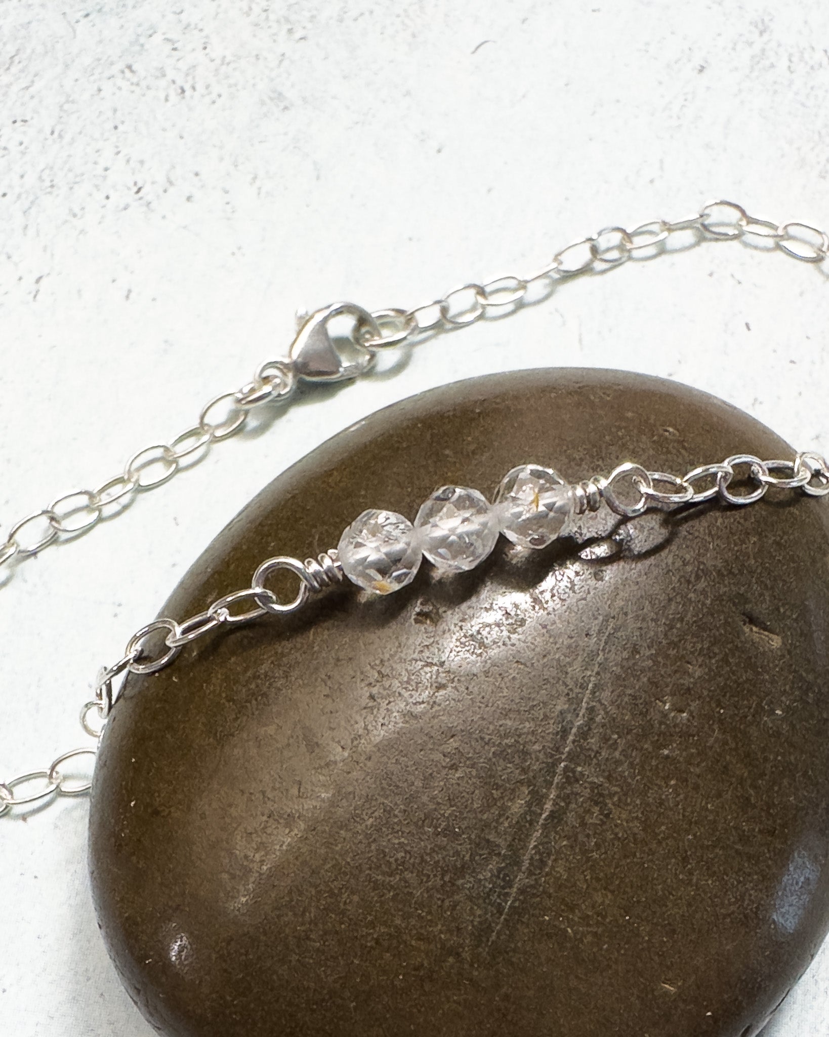 This dainty yet meaningful bracelet features a mix of 3–4mm round faceted gemstones. Each stone is carefully chosen for its beauty and energetic properties, strung along a delicate sterling silver cable chain with a secure clasp.