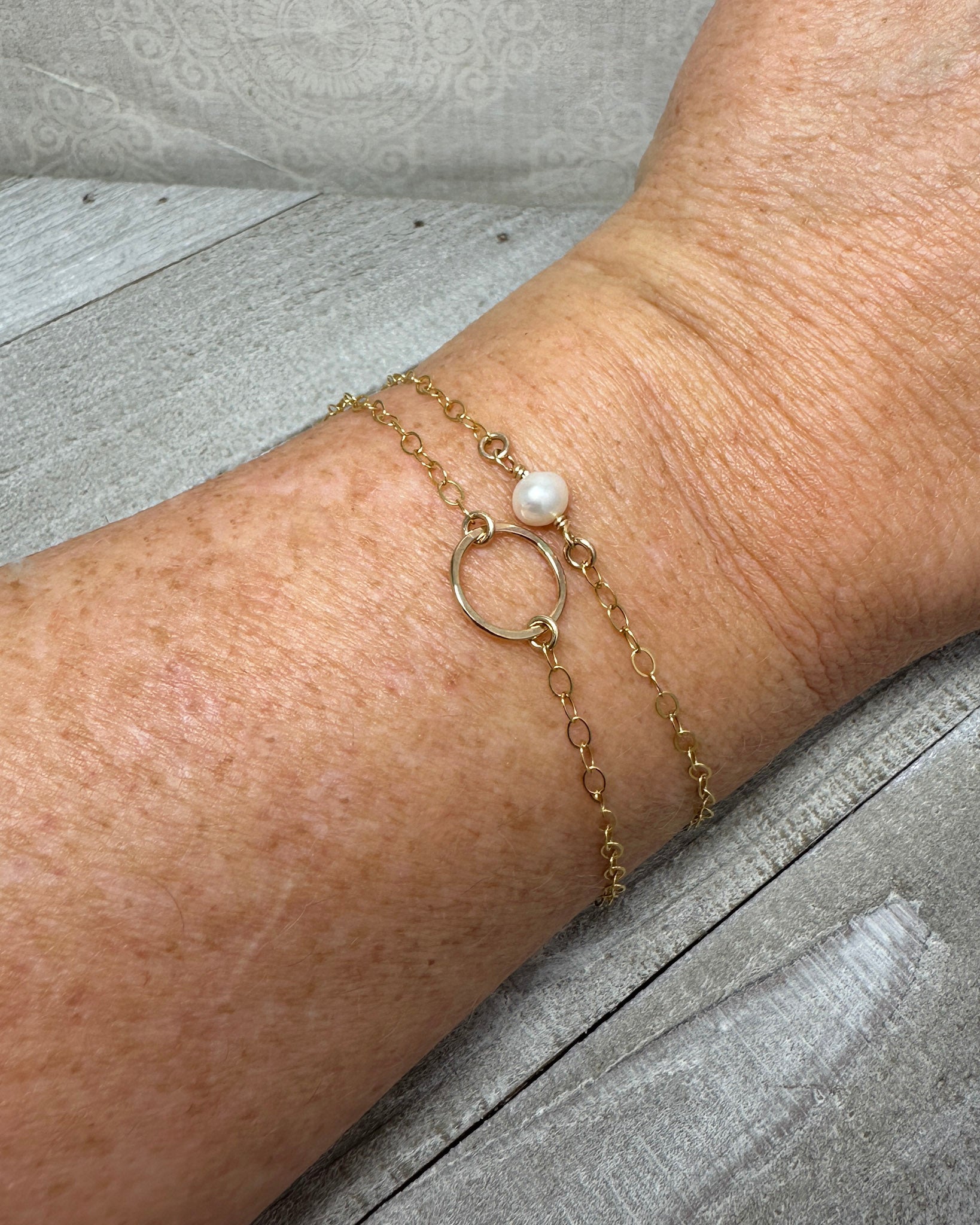 Whether you're headed to brunch, barefoot on the beach, or dressing up a simple outfit, this dainty silver pearl bracelet adds a subtle glow that goes with everything.