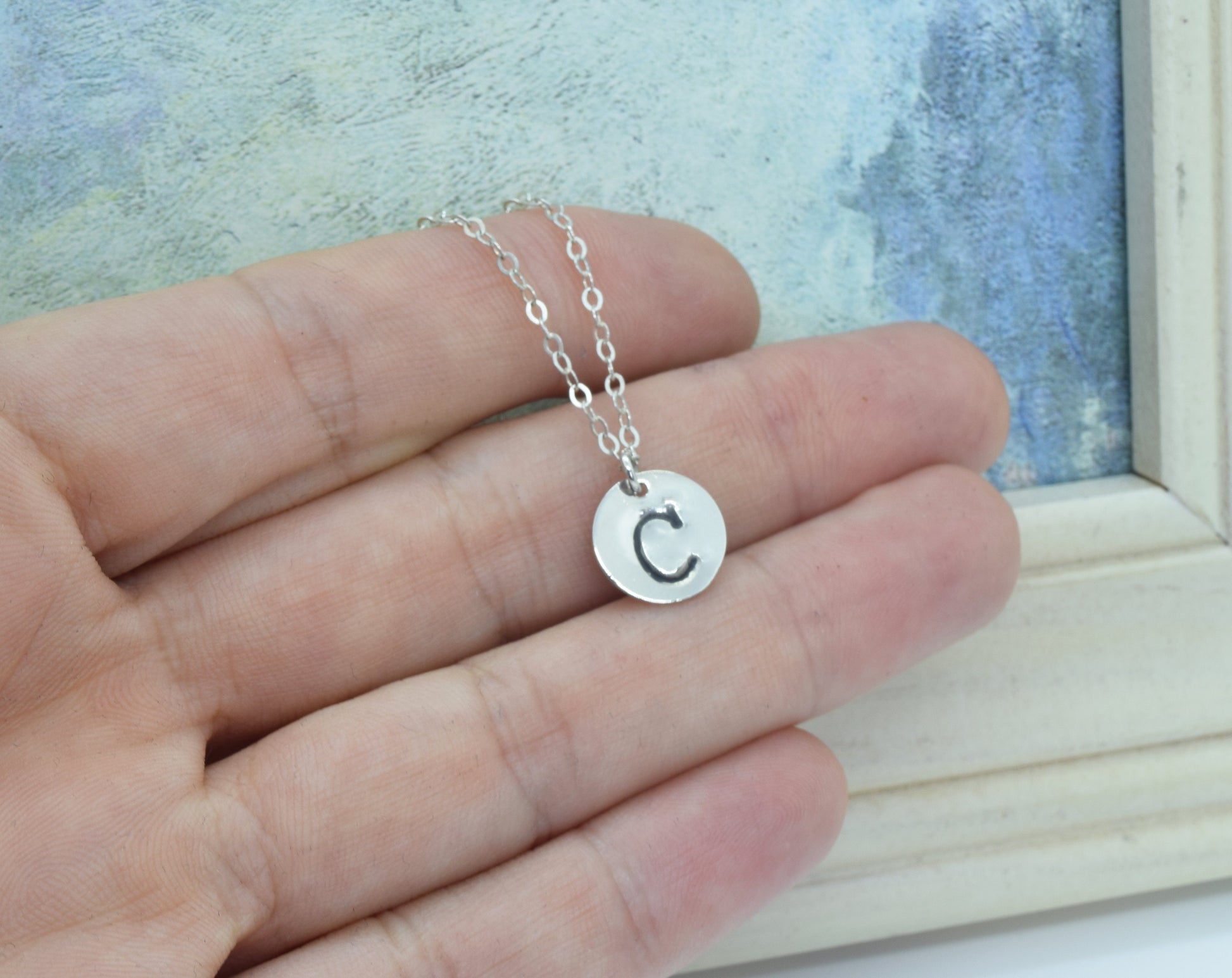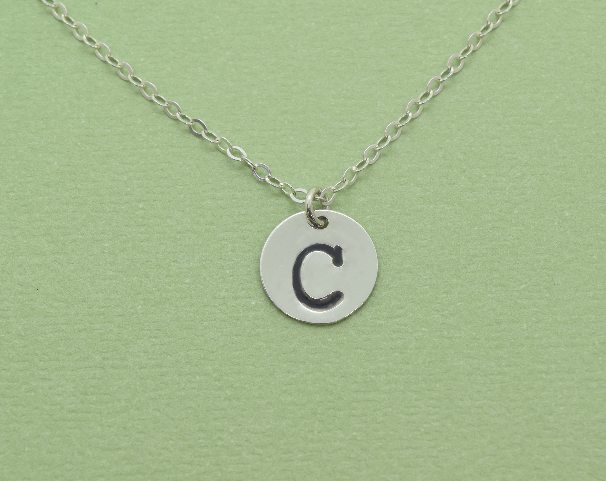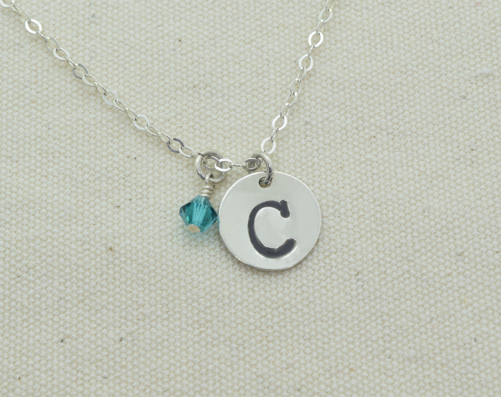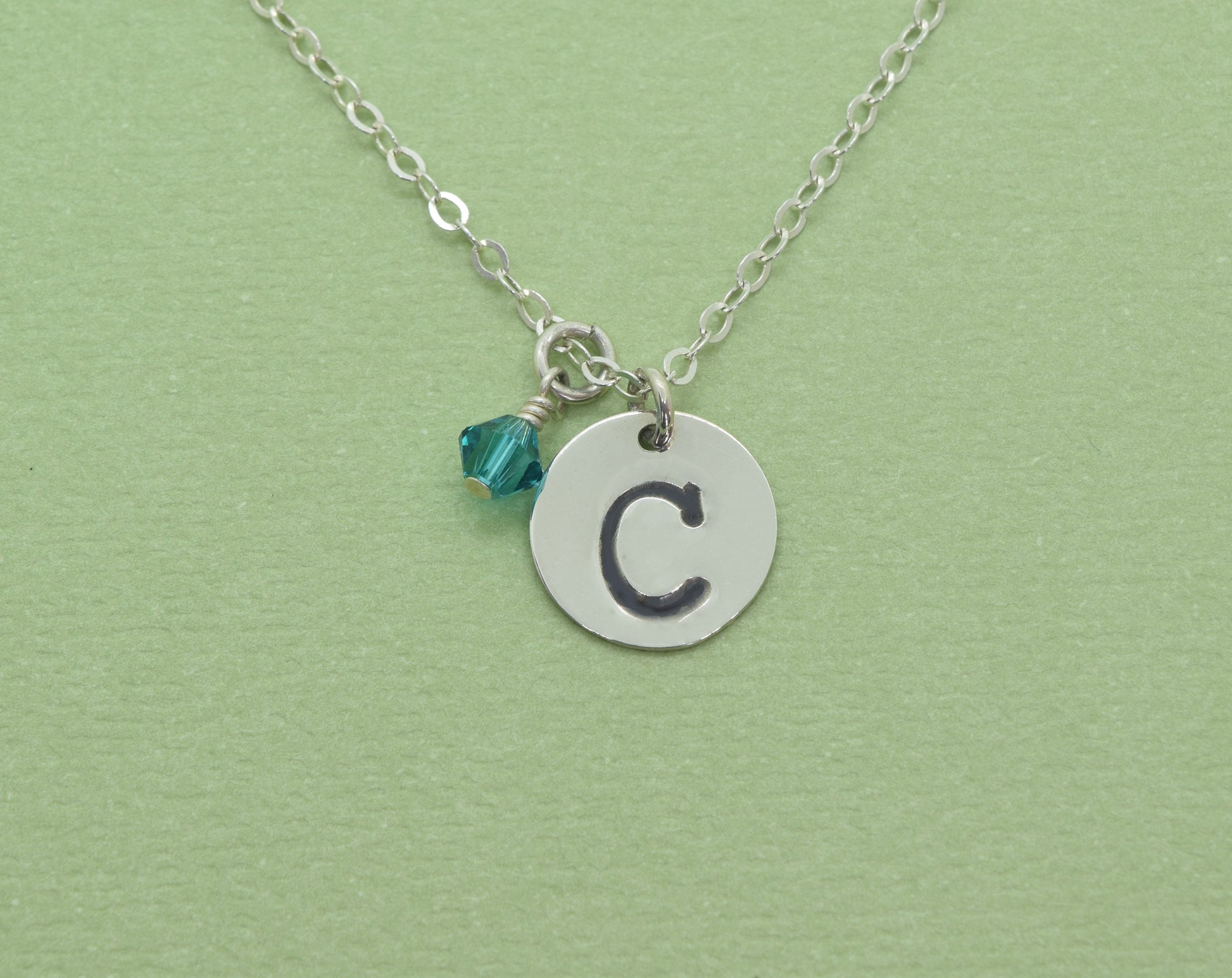 A delicate cable chain with your initial only or with a birthstone is available in 14, 16, 18 or 20 inch lengths. The charms are handcrafted of sterling silver and measure 7/16" (11mm). If you would like more than one charm, let us know with a message!