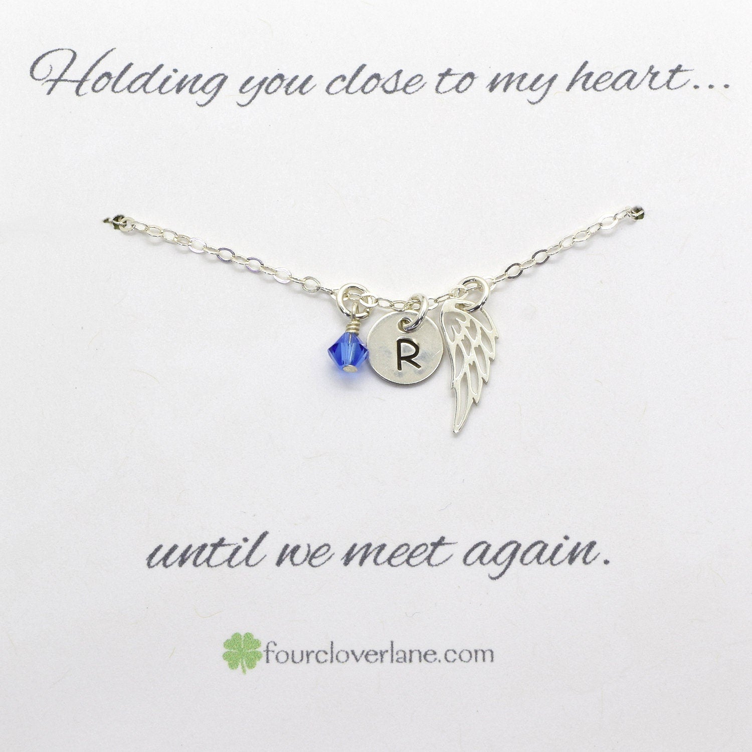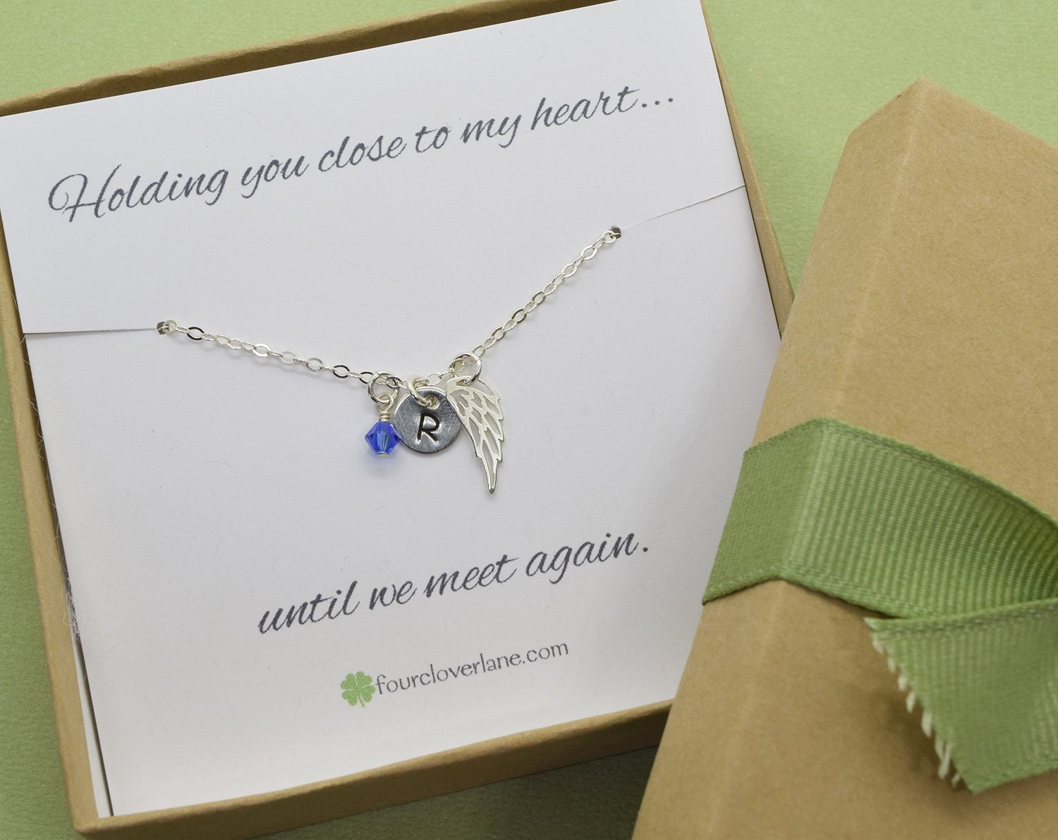 Necklace card reads "Holding you close to my heart...until we meet again."