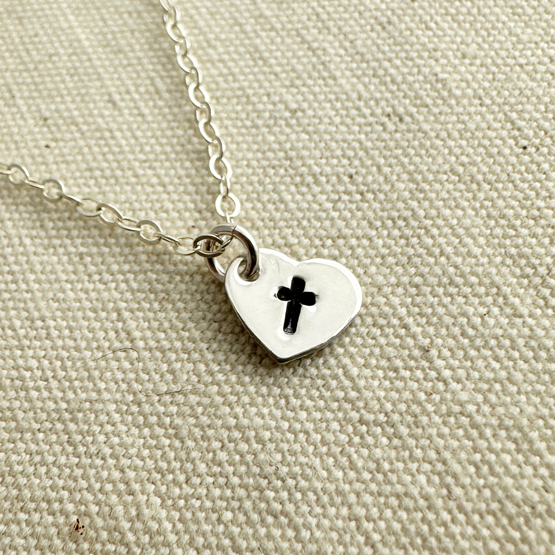 This delicate tiny heart pendant features a tiny cross and is the perfect symbol of love and faith. Its minimalist design ensures it complements any outfit while making a heartfelt statement.