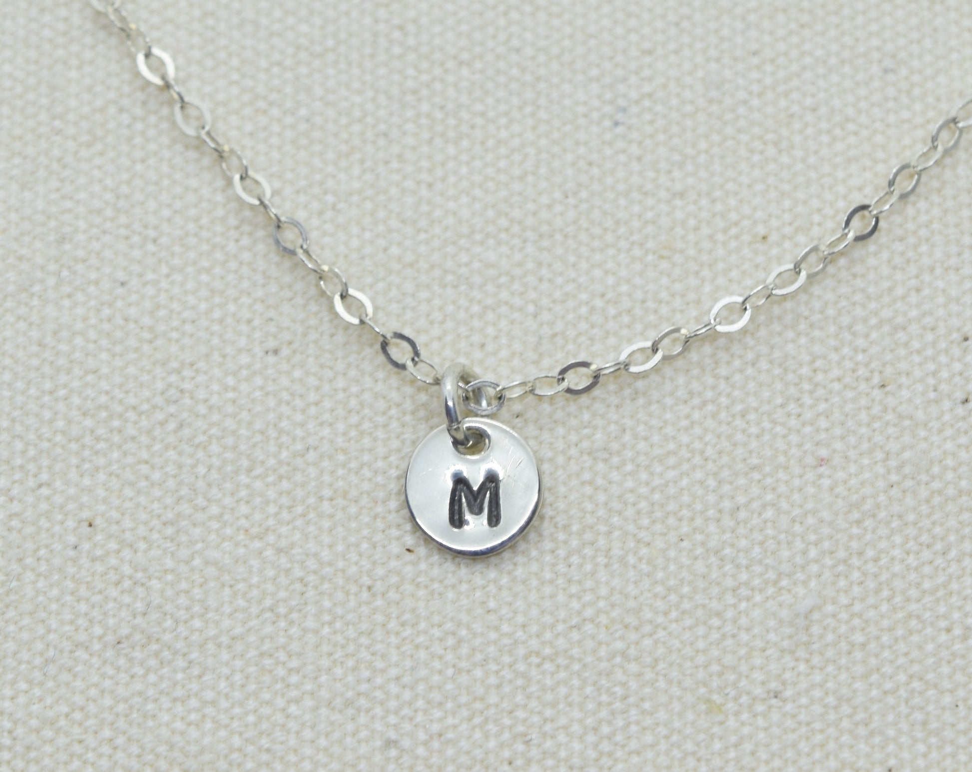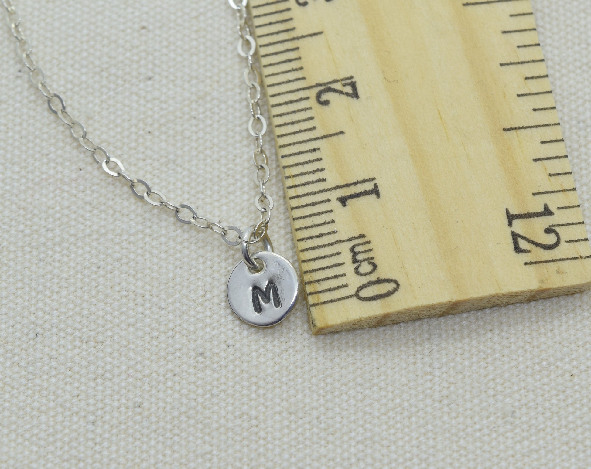 A delicate cable chain with a teeny, tiny initial charm only or with a birthstone is available in 14, 16, 18 or 20 inch lengths. The charms are handcrafted of sterling silver and measure 1/4" (6.3 mm). If you would like more than one charm, let us know with a message!
